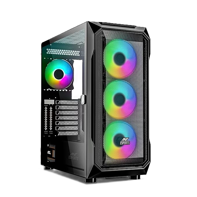 Ant Esports ICE-410TG Mid-Tower – White/Black | E-ATX/ATX/M-ATX/ITX Support | 4×ARGB Fans Pre-Installed | Type-C | Tempered Glass.
