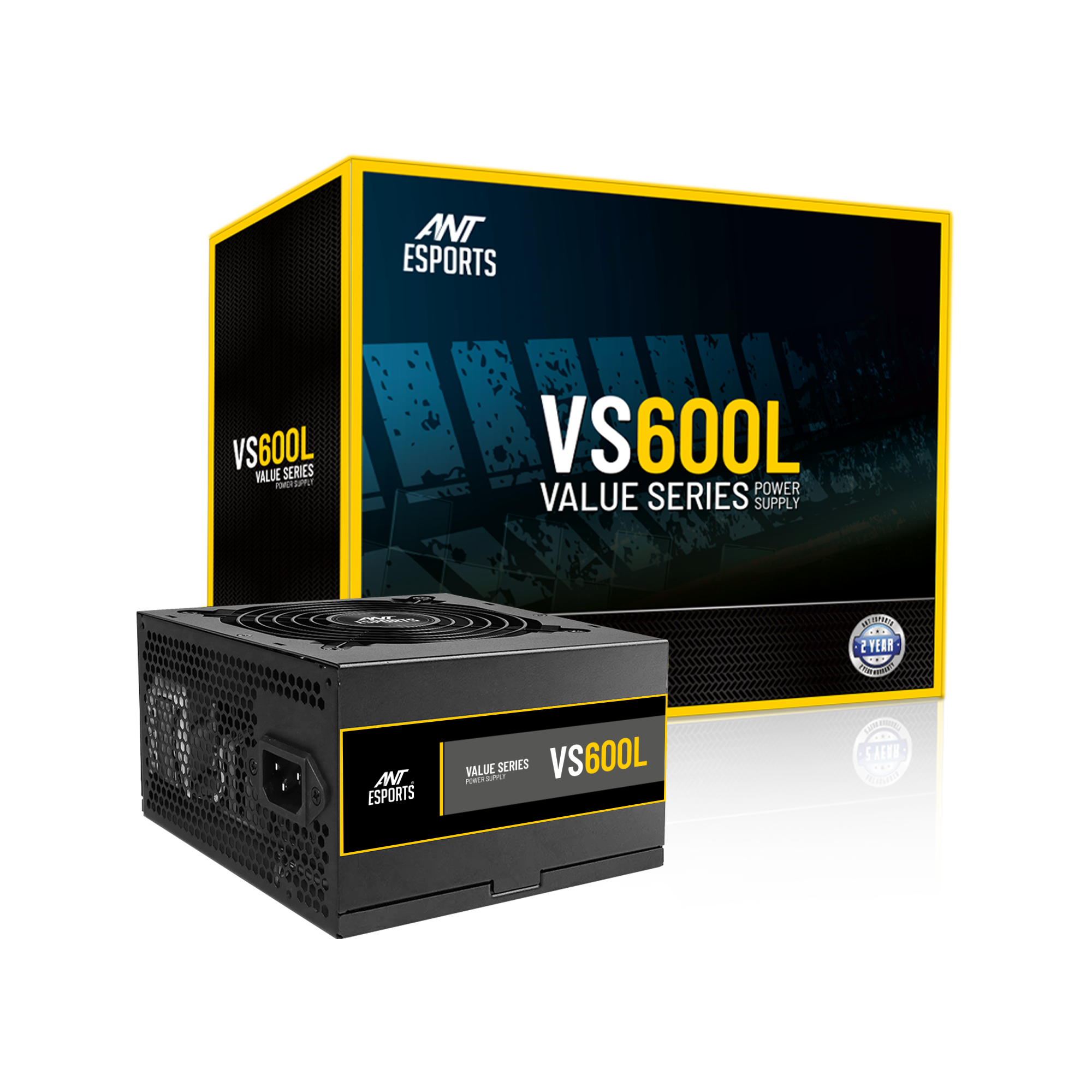Ant Esports VS600L – 600W Non-Modular Gaming PSU | High Efficiency with 120mm Silent Fan & PCIe Support.