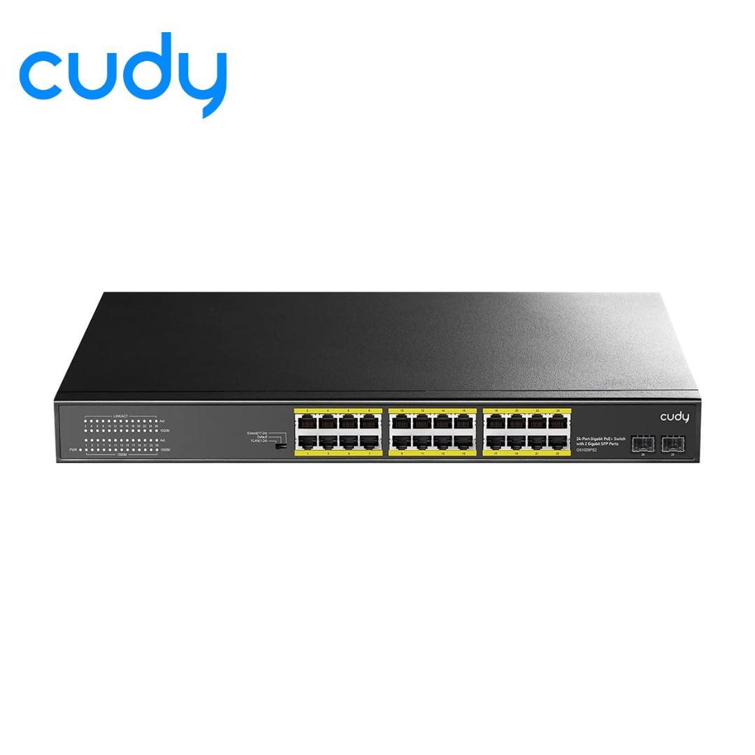 Cudy GS1028PS2 24-Port Gigabit PoE+ Switch | 24 PoE+ Ports (802.3af/at) + 2 SFP Slots | 300W Total Power (Up to 30W/Port) | 52 Gbps Switching | VLAN & CCTV Modes | 6KV Lightning Protection.