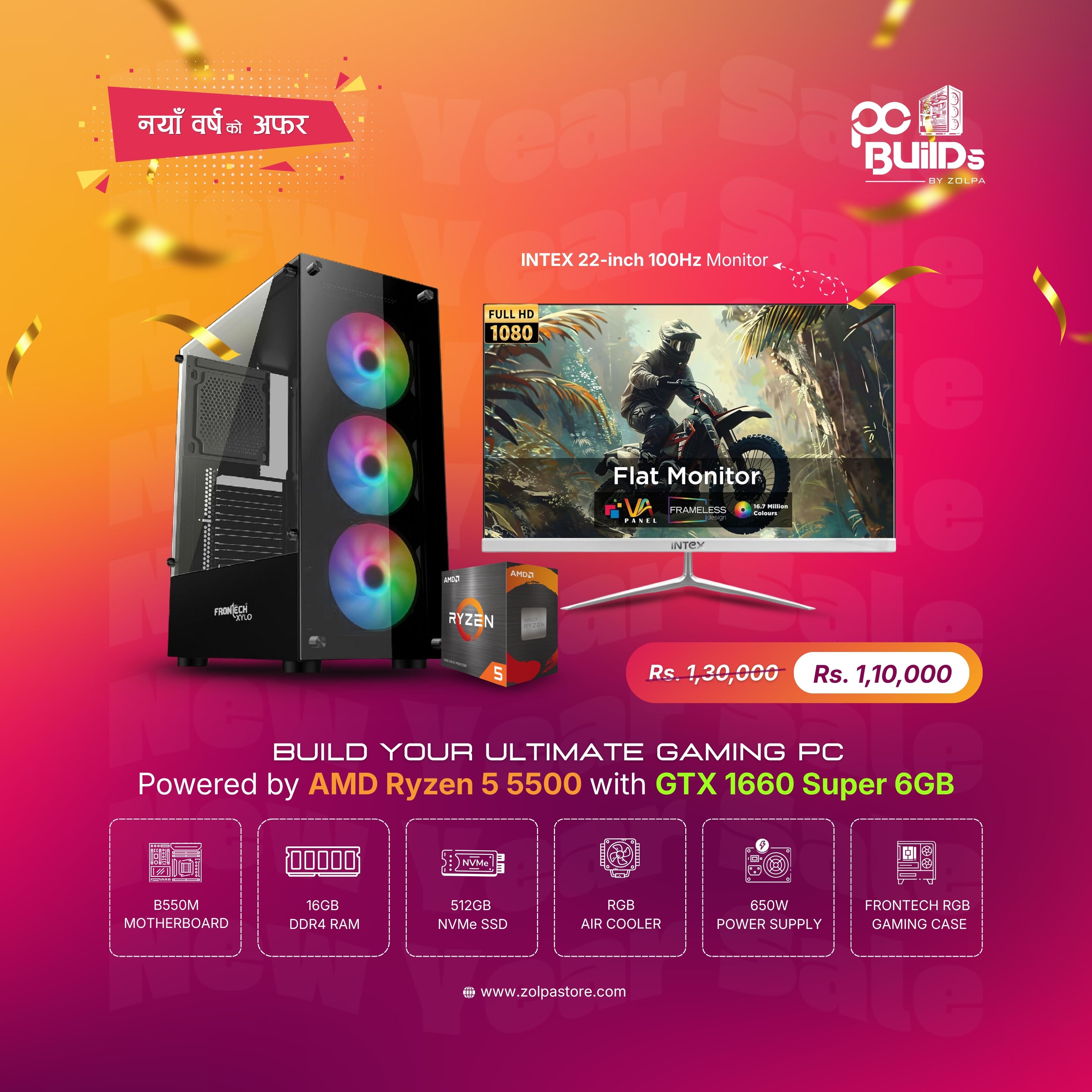 AMD Ryzen 5 5500 | 16GB + 512GB | GTX 1660 6GB | Intex 22" Monitor |