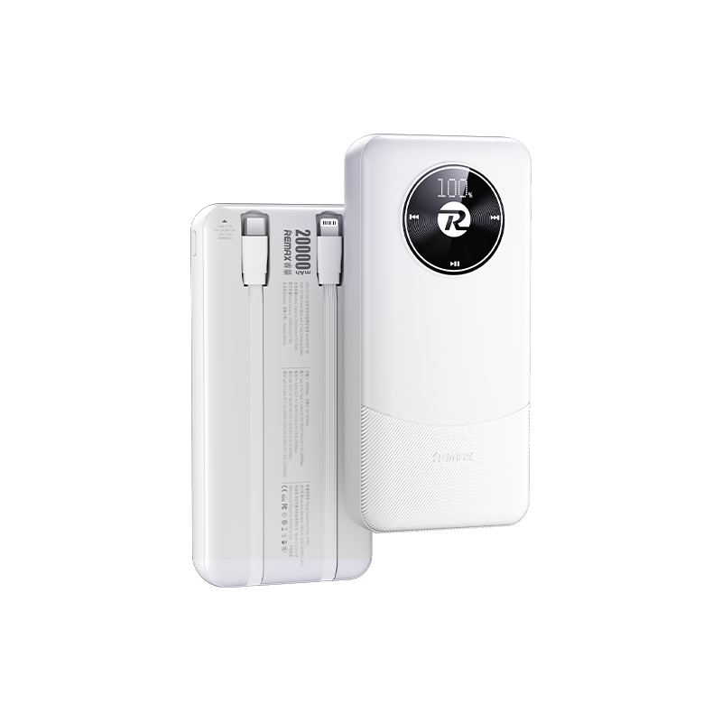 Remax RPP-382 20000mAh Power Bank | 20W + 22.5W Self-Contained Dual Fast Charging Cables | Three Outputs & Two Inputs | LED Intelligent Digital Display | Long-Lasting Battery Life.