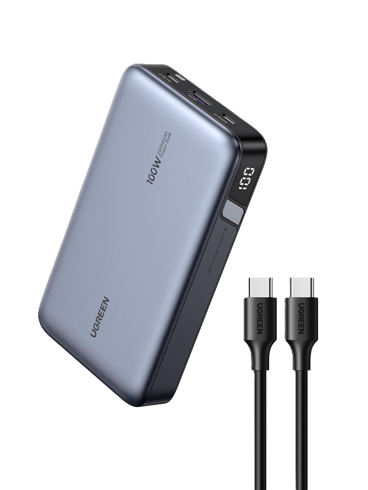 UGREEN 100W Power Bank | 20,000mAh Portable Charger | 3-Port USB-C PD Fast Charging | Digital Display | For MacBook | iPhone 16 | Galaxy S24 Ultra | Steam Deck | Dell XPS & More.